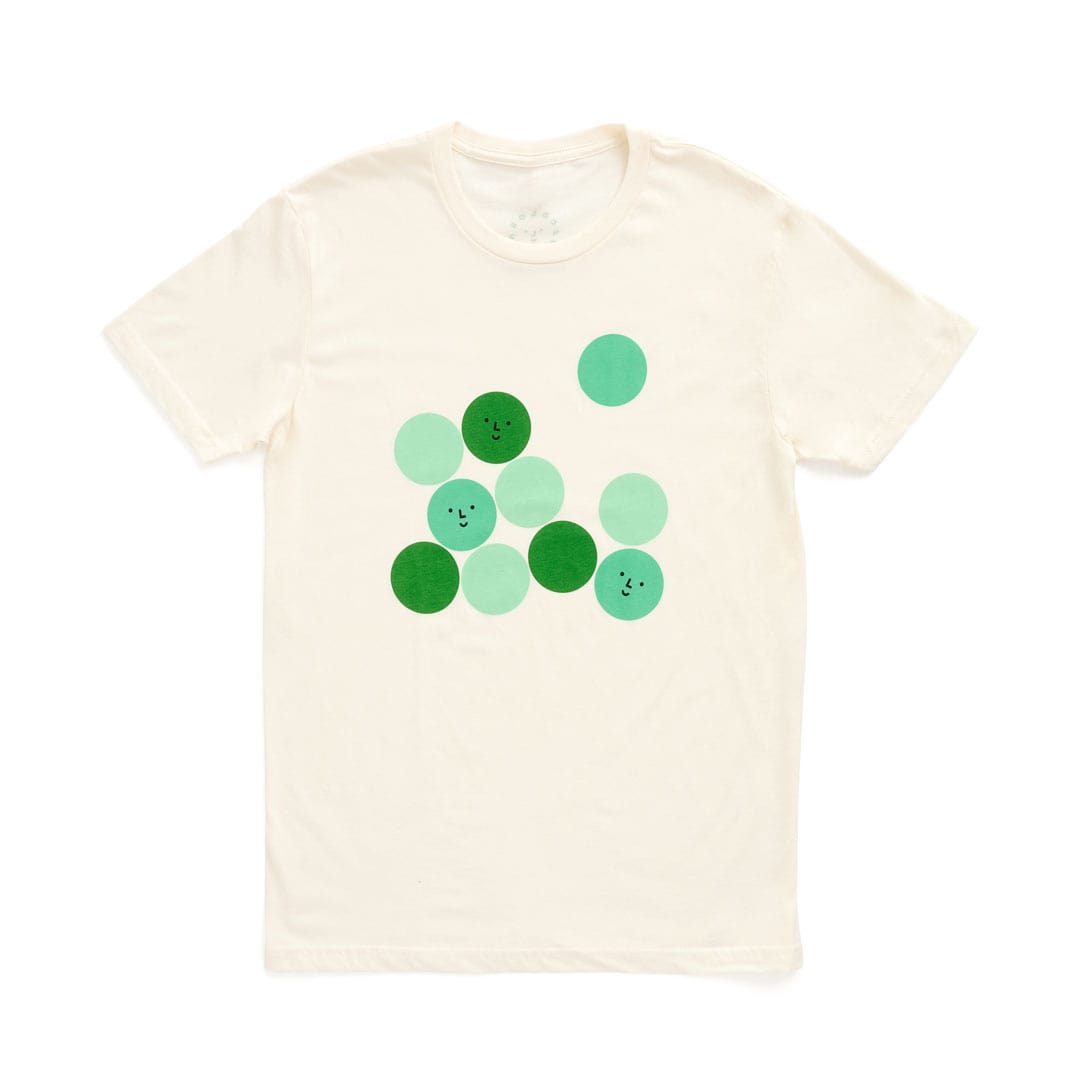 The grass is always greener in this super-comfy tee! This shirt was designed during the launch of our new Chicago location. The various shades of green, screen printed on the front, perfectly match the mint of everyone's favorite room... the ball pit!