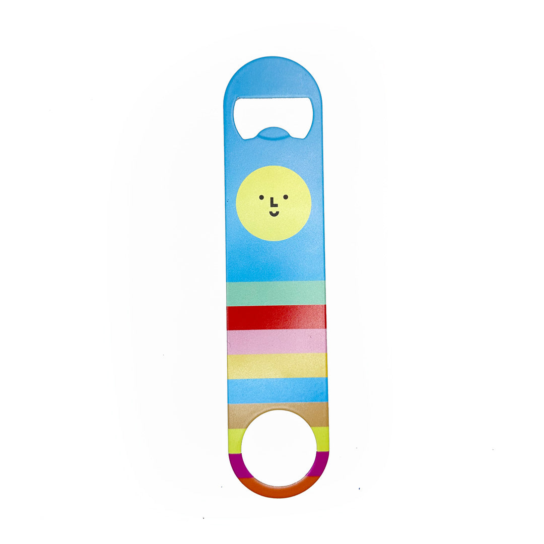 Pop open your favorite beverages with style and a splash of color! Introducing our vibrant Blue Bottle Opener from the Color Factory collection. Featuring the iconic smiley logo on one side and the Color Factory logo on the other, this opener adds a playful touch to every gathering. Get ready to bring some fun to your next party!